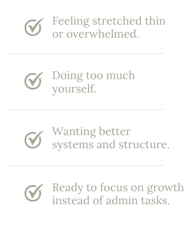 Running a business often means wearing too many hats. If you’re feeling overwhelmed by the day-to-day operations, a discovery call is the first step toward creating structure and support behind the scenes.